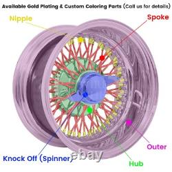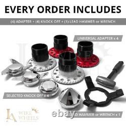 Full Set Included (4 Adapters, 4 Knock-Offs, 1 Wrench or 1 Lead Hammer). Spoke / Nipple / Knock Off (Spinner) / Hub / Outer.Gold Plating & Custom Coloring Available (Optional). Please give us call for detail & price.