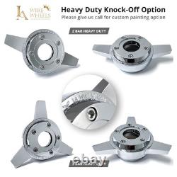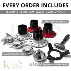 6x135 / 6x139 (According to Vehicle). Candy Blue with White Spokes and Chrome Accents. Full Set Included (4 Adapters, 4 Knock-Offs, 1 Wrench or 1 Lead Hammer).