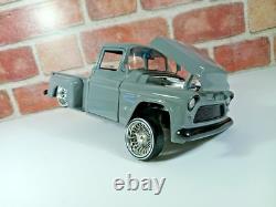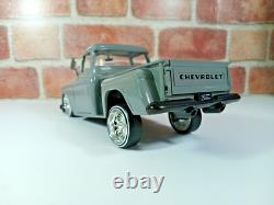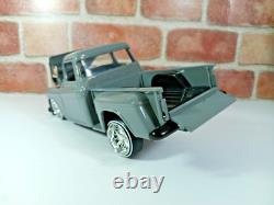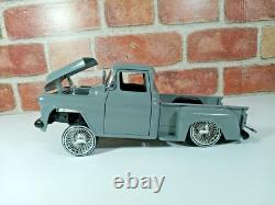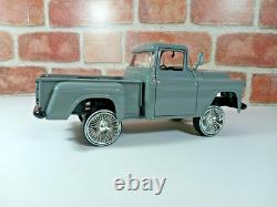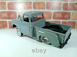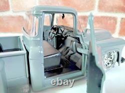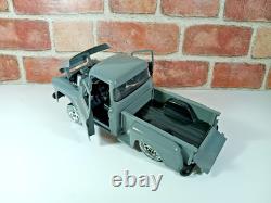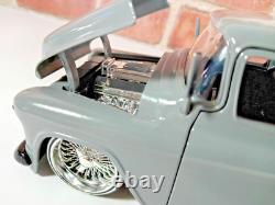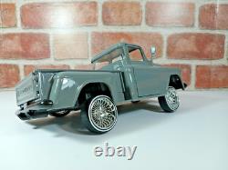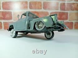 The doors & tailgate open too. You can adjust the pose to any stance high, low or anywhere in between. Made of die cast metal with plastic parts and is a 1/24 scale or approx 8 1/4 inches long. No box included just the truck. Great for your lowrider collection.