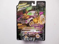 Johnny Lightnings Rat Fink Zingers Series "Big Daddy Caddy" 1967 Cadillac Eldorado White Lightning Chase Car is mint in sealed blister pack. It is an awesome looking Purple & White 1/64 scale (matchbox size) die-cast metal replica that has a detailed gold blown engine, a detailed Gold Chrome Interior, a Gold Chassis, Gold Wheels and White Real Rubber Tires. This is a Very Rare Beauty that has excellent detail for its scale (see pictures).